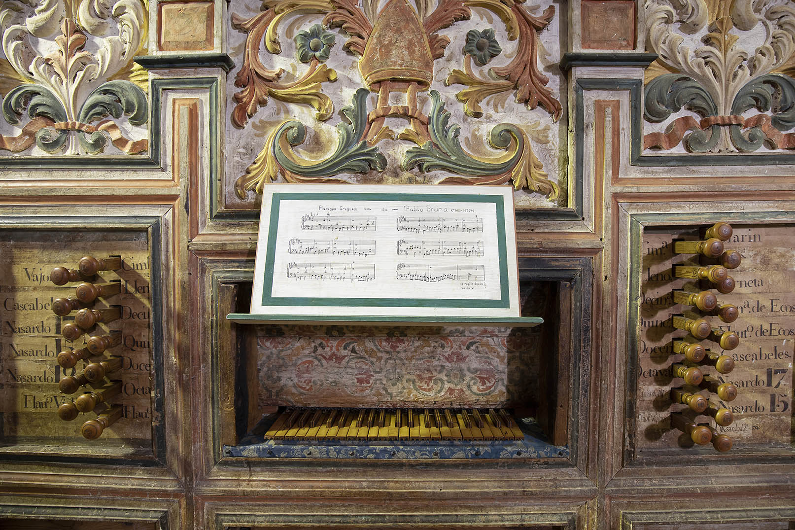 En el tramo de los pies encontramos un coro alto decorado por un alfarje de madera de calidad excepcional.